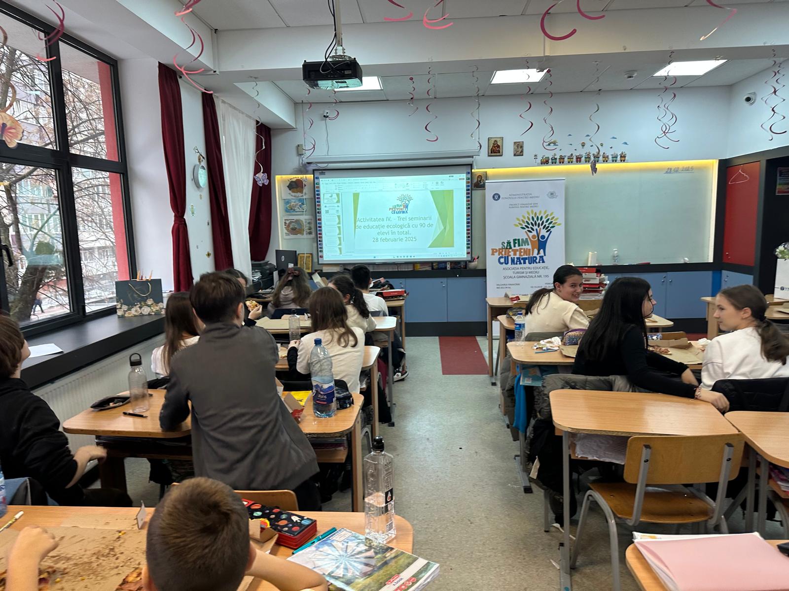 În data de 28 februarie 2025, la Școala Gimnazială nr. 195 din București, s-a desfășurat al treilea seminar de educație ecologică, dedicat elevilor clasei a VI-a A. Această activitate a avut rolul de a le oferi elevilor o mai bună înțelegere a problemelor de mediu și a soluțiilor prin care pot contribui la protejarea naturii.